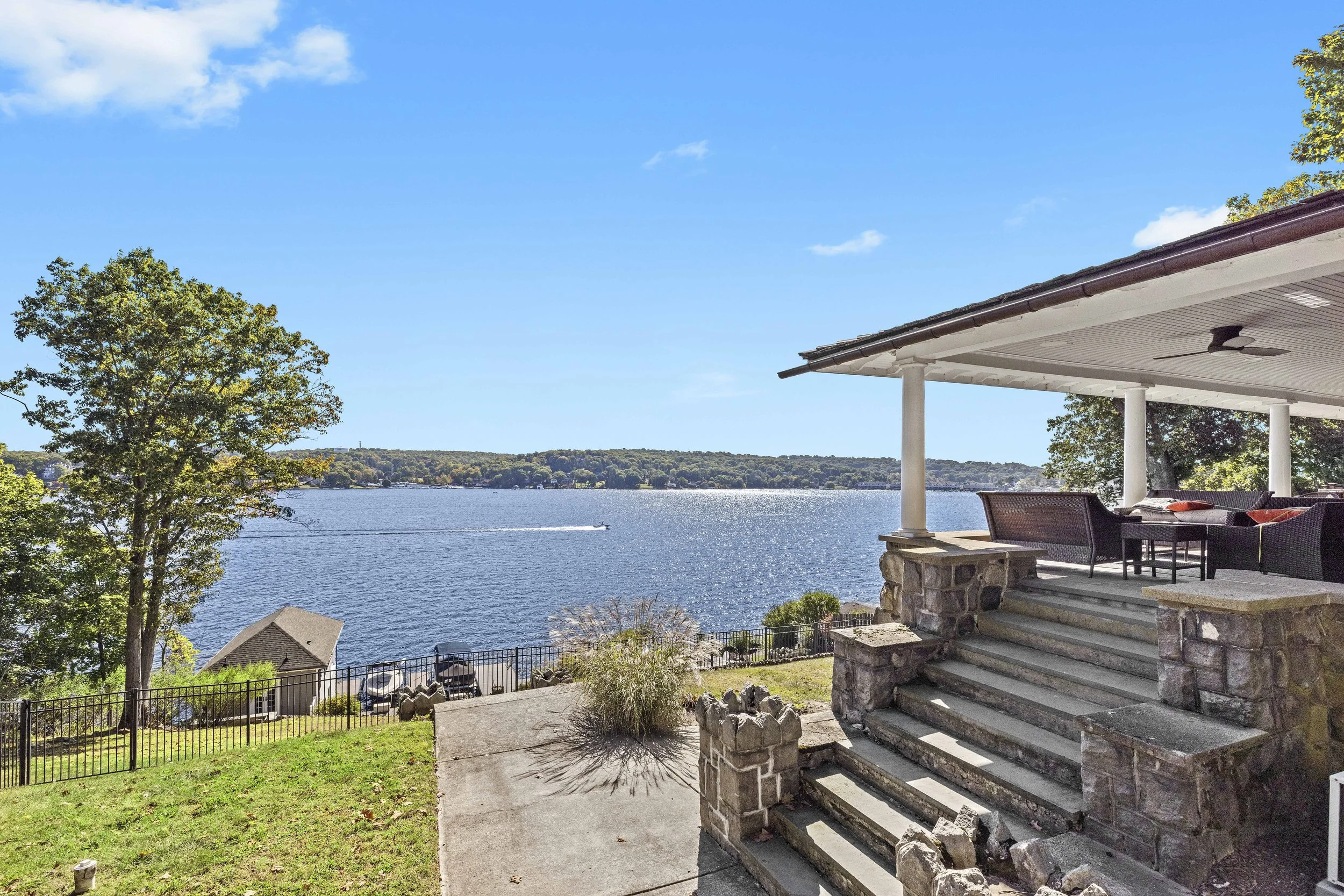 The home features an open concept main living floor with refinished hardwood flooring throughout, and a stunning stone fireplace. The main living floor opens to a dining room perfect for entertaining. The tastefully renovated kitchen is fit for a chef and opens to a huge side patio with unparalleled views of the lake making it ideal for indoor/outdoor entertaining. The second and third floors of the Victorian home host 5 bedrooms,including a primary suite and 4 renovated bathrooms.